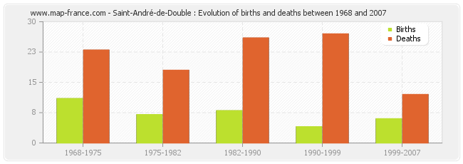 - Saint-André-de-Double in 2007 : 1 births and 4 deaths