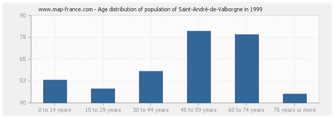 - Population of Saint-André-de-Valborgne from 45 to 59 years : 79 inhabitants