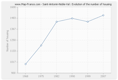 The number of housing of Saint-Antonin-Noble-Val was 1 514 in 2007, 1 446 in 1999, 1 481 in 1990, 1 445 in 1982, 1 194 in 1975 and 995 in 1968.