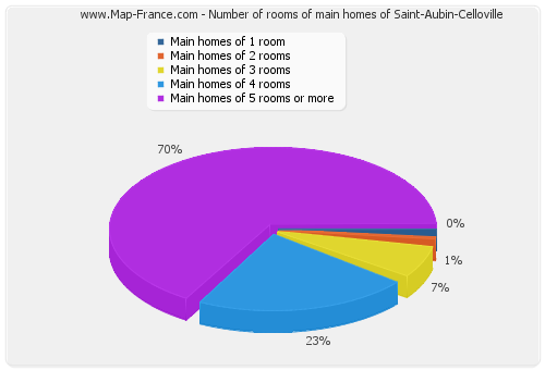 - Number of main homes of Saint-Aubin-Celloville of 1 room : 0 - Number of main homes of Saint-Aubin-Celloville of 2 rooms : 2 - Number of main homes of Saint-Aubin-Celloville of 3 rooms : 23 - Number of main homes of Saint-Aubin-Celloville of 4 rooms : 23 - Number of main homes of Saint-Aubin-Celloville of 5 rooms and more : 237 |