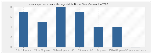 Men population distribution of Saint-Baussant by age in 2007 :