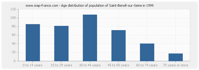 - Population of Saint-Benoît-sur-Seine from 30 to 44 years : 107 inhabitants