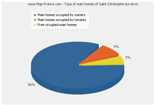- Number of main homes of Saint-Christophe-sur-Avre occupied by owners : 50 - Number of main homes of Saint-Christophe-sur-Avre occupied by tenants : 5 - Number of main homes of Saint-Christophe-sur-Avre occupied free of charge : 3 |