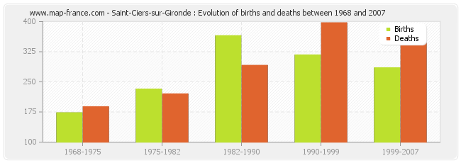 Saint-Ciers-sur-Gironde : evolution of births and deaths from 1968 to 2007