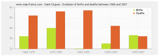 Saint-Cirgues : evolution of births and deaths from 1968 to 2007