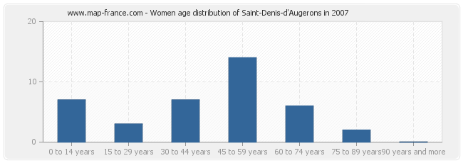 - Saint-Denis-d'Augerons women inhabitants from 45 to 59 years : 14
