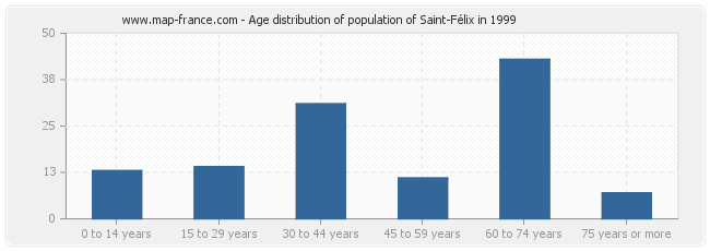 - Population of Saint-Félix from 60 to 74 years : 43 inhabitants