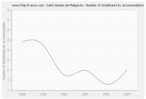 - Number of inhabitants per housing of Saint-Geniès-de-Malgoirès in 1968 : 2,68