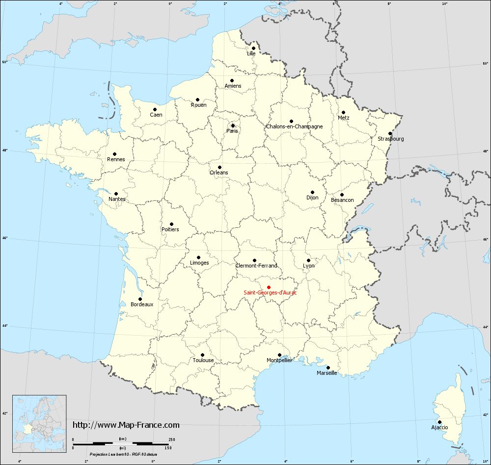 Map of Saint-Georges-d'Aurac with departments and prefectures