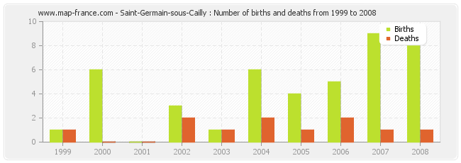Saint-Germain-sous-Cailly : births and deaths from 1999 to 2008