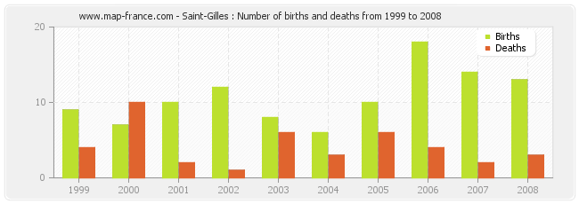 - Saint-Gilles in 2000 : 7 births and 10 deaths