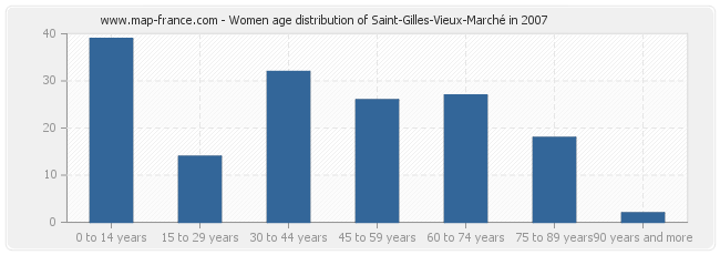 Women population distribution of Saint-Gilles-Vieux-Marché by age in 2007 :