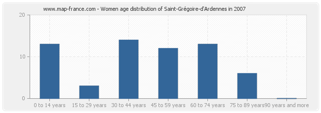- Saint-Grégoire-d'Ardennes women inhabitants of 65 years and more : 13