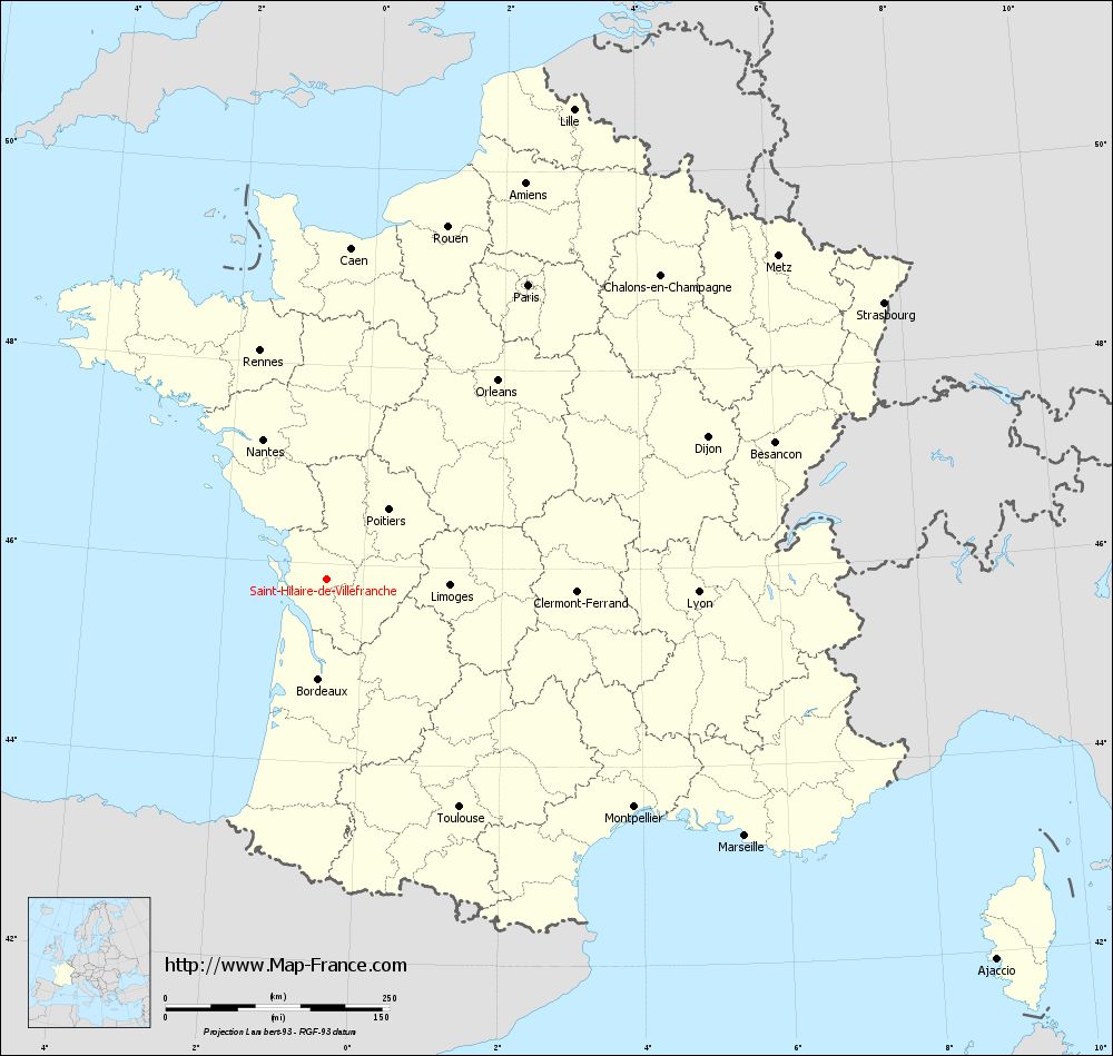 Map of Saint-Hilaire-de-Villefranche with regions and prefectures