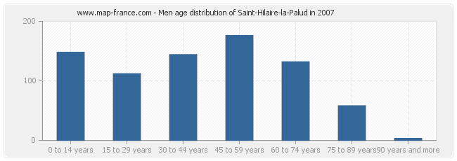 Men population distribution of Saint-Hilaire-la-Palud by age in 2007 :