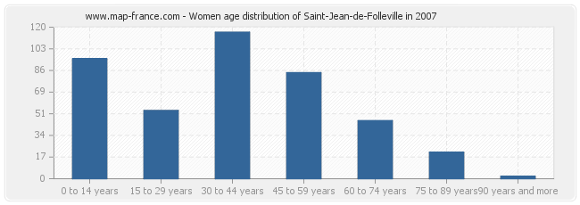 - Saint-Jean-de-Folleville women inhabitants from 30 to 44 years : 116