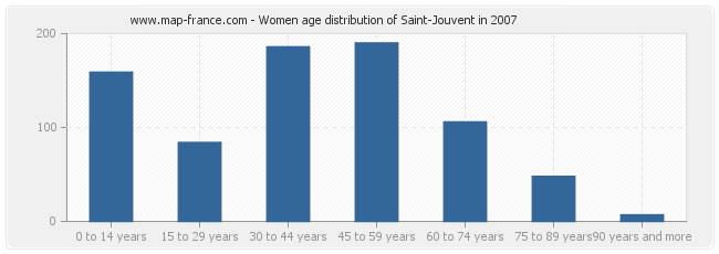 Women population distribution of Saint-Jouvent by age in 2007 :
