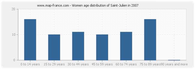 - Saint-Julien women inhabitants from 75 to 90 years : 16