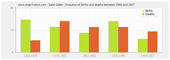 Saint-Julien : evolution of births and deaths from 1968 to 2007