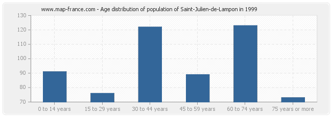- Population of Saint-Julien-de-Lampon from 60 to 74 years : 123 inhabitants