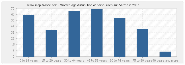 - Saint-Julien-sur-Sarthe women inhabitants from 45 to 59 years : 69