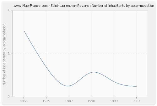 The number of inhabitants of Saint-Laurent-en-Royans per housing was 2,24 in 2007.