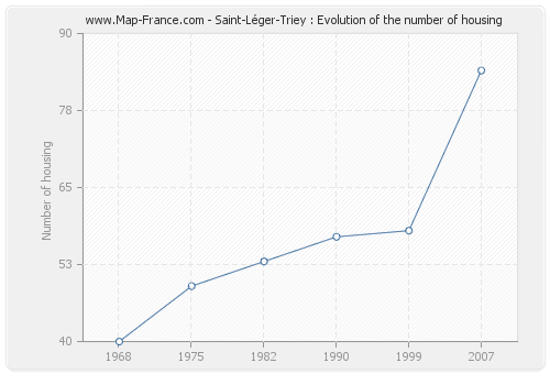 The number of housing of Saint-Léger-Triey was 84 in 2007, 58 in 1999, 57 in 1990, 53 in 1982, 49 in 1975 and 40 in 1968.