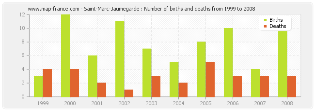 - Saint-Marc-Jaumegarde in 2008 : 10 births and 3 deaths