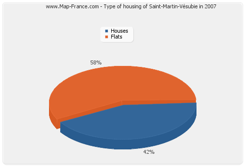 In 2007 the accommodations of Saint-Martin-Vésubie consisted of 670 main homes, 1 266 second homes and 172 vacant accommodations.