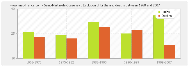 Saint-Martin-de-Bossenay : evolution of births and deaths from 1968 to 2007