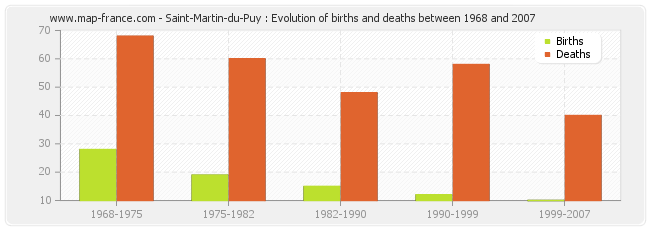 Saint-Martin-du-Puy : evolution of births and deaths from 1968 to 2007