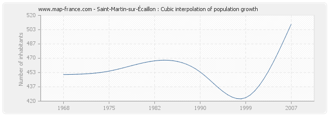 Population of Saint-Martin-sur-Écaillon was 510 inhabitants in 2007, 424 inhabitants in 1999, 454 inhabitants in 1990, 467 inhabitants in 1982, 455 inhabitants in 1975 and 451 inhabitants in 1968.