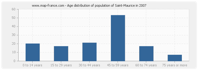 - Population of Saint-Maurice from 45 to 59 years : 53 inhabitants