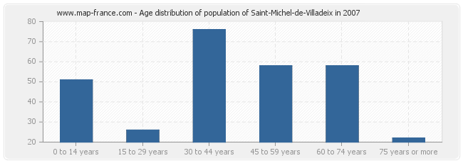 - Population of Saint-Michel-de-Villadeix from 30 to 44 years : 76 inhabitants