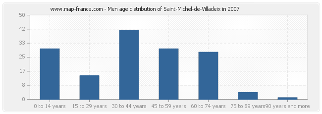 - Saint-Michel-de-Villadeix men inhabitants from 30 to 44 years : 41