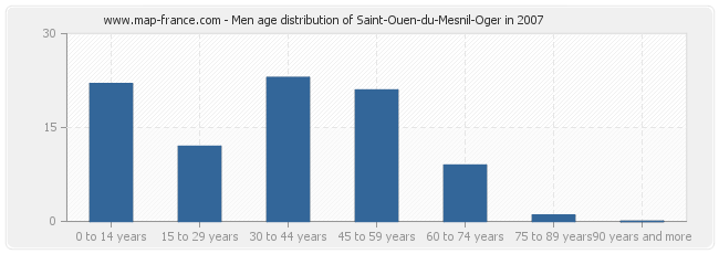 - Saint-Ouen-du-Mesnil-Oger men inhabitants from 30 to 44 years : 23