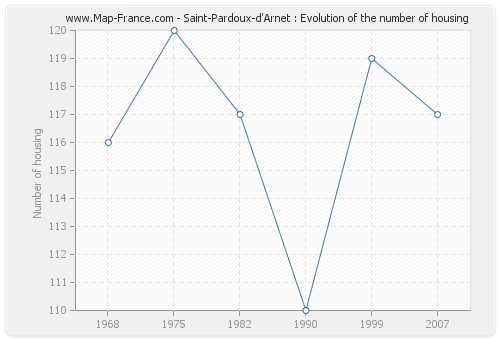 The number of housing of Saint-Pardoux-d'Arnet was 117 in 2007, 119 in 1999, 110 in 1990, 117 in 1982, 120 in 1975 and 116 in 1968.