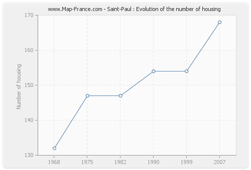 The number of housing of Saint-Paul was 168 in 2007, 154 in 1999, 154 in 1990, 147 in 1982, 147 in 1975 and 132 in 1968.
