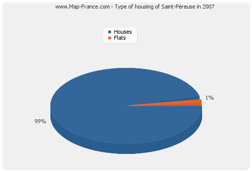 The following graphs show the history of the number and the type of housing of Saint-Péreuse from 1968 to 2007. The second graph is drawn in cubic interpolation. This allows to obtain more exactly the number of accommodation of the town of Saint-Péreuse years where no inventory was made.