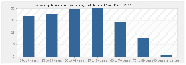 - Saint-Phal women inhabitants from 45 to 59 years : 50