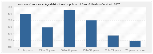 Distribution of the population of Saint-Philbert-de-Bouaine by age in 2007 :
