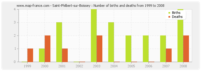 - Saint-Philbert-sur-Boissey in 2008 : 4 births and 2 deaths