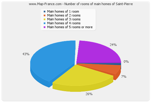 - Number of main homes of Saint-Pierre of 1 room : 0 - Number of main homes of Saint-Pierre of 2 rooms : 5 - Number of main homes of Saint-Pierre of 3 rooms : 18 - Number of main homes of Saint-Pierre of 4 rooms : 18 - Number of main homes of Saint-Pierre of 5 rooms and more : 17 |