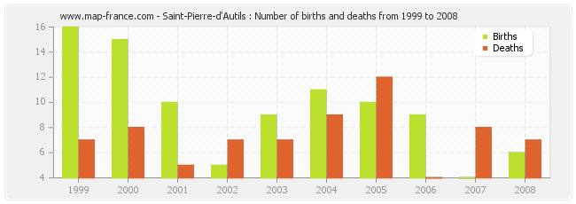 Saint-Pierre-d'Autils : births and deaths from 1999 to 2008