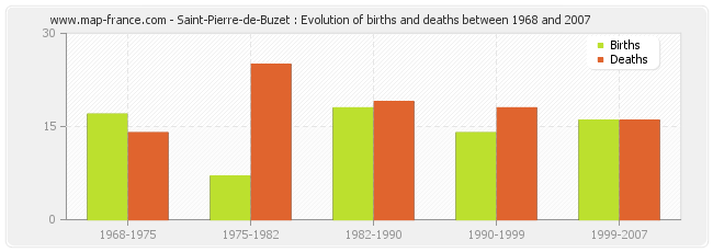 Saint-Pierre-de-Buzet : evolution of births and deaths from 1968 to 2007