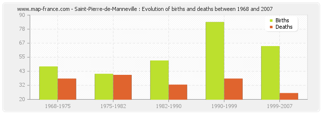 Saint-Pierre-de-Manneville : evolution of births and deaths from 1968 to 2007