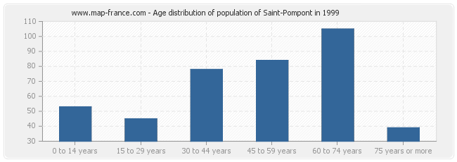 - Population of Saint-Pompont from 60 to 74 years : 105 inhabitants
