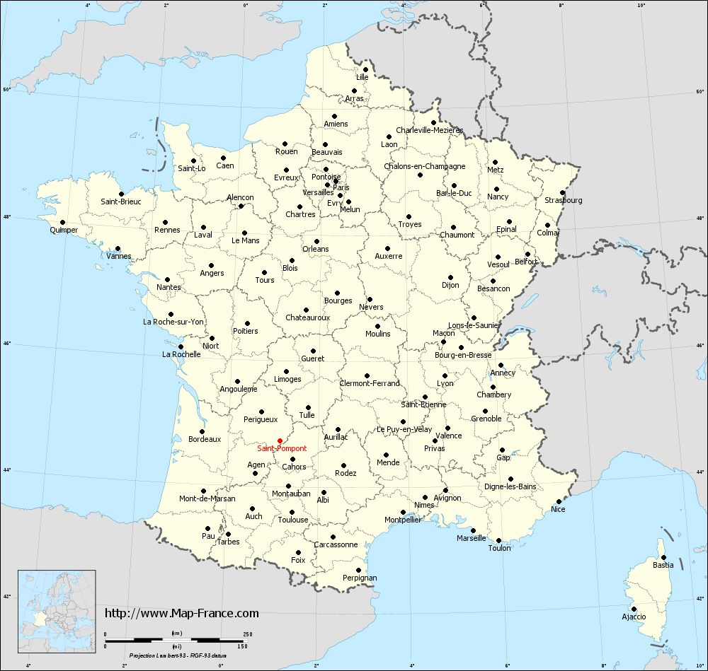 You will find the location of Saint-Pompont on the map of France of regions in Lambert 93 coordinates. The town of Saint-Pompont is located in the department of Dordogne of the french region Aquitaine.