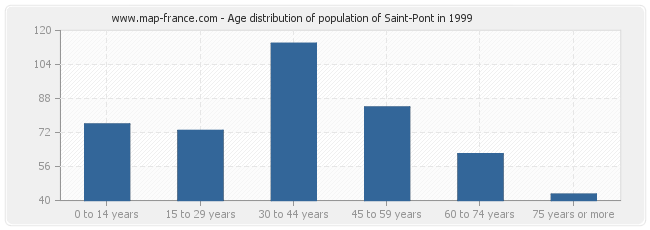- Population of Saint-Pont from 30 to 44 years : 114 inhabitants