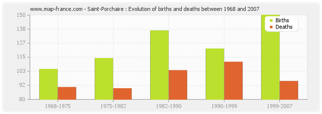 Saint-Porchaire : evolution of births and deaths from 1968 to 2007